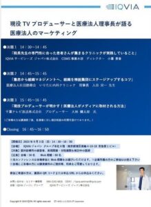 9月3日(日)、IQVIAジャパン様グループ本社にて、「集患から組織マネジメントへ、組織を精鋭集団にステージアップするコツ」というテーマで院長が講演しました。
