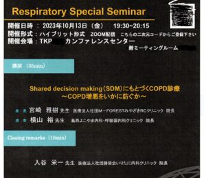 10月13日(金)、Respiratory Special Seminar「Shared decision making(SDM)にもとづくCOPD診療~COPD憎悪をいかに防ぐか~」にて、院長がクロージングを担当しました。 (文責 福田)