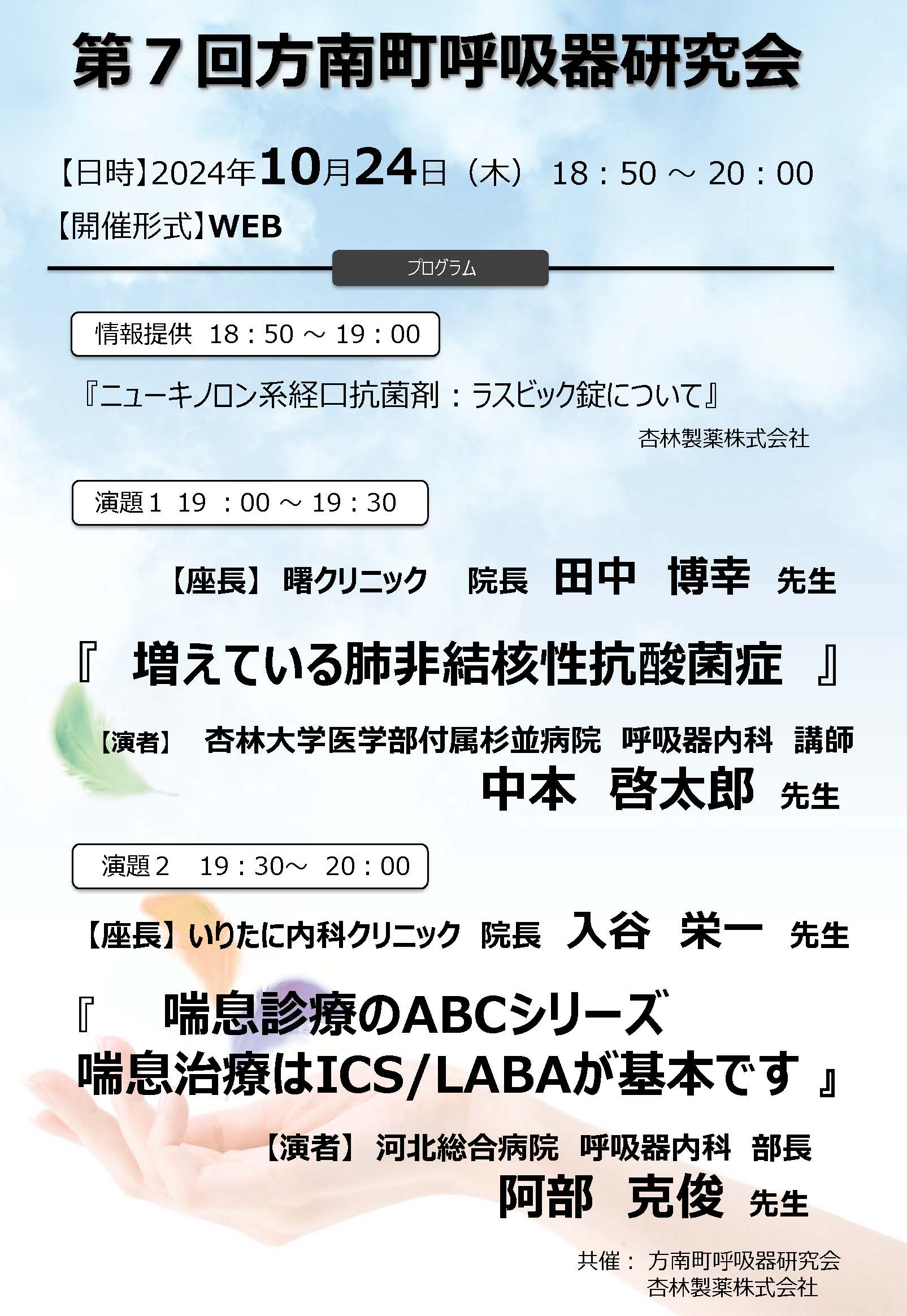 10月24日(木)開催の「第7回方南町呼吸器研究会」にて院長が座長を務めました。