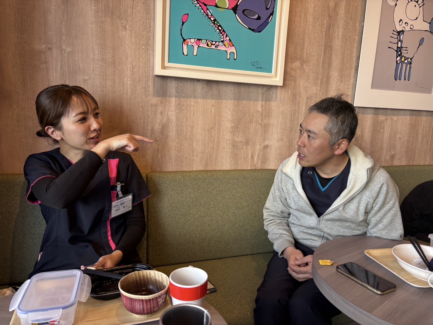 いりたに内科のランチタイムはカフェスペースが賑わいます