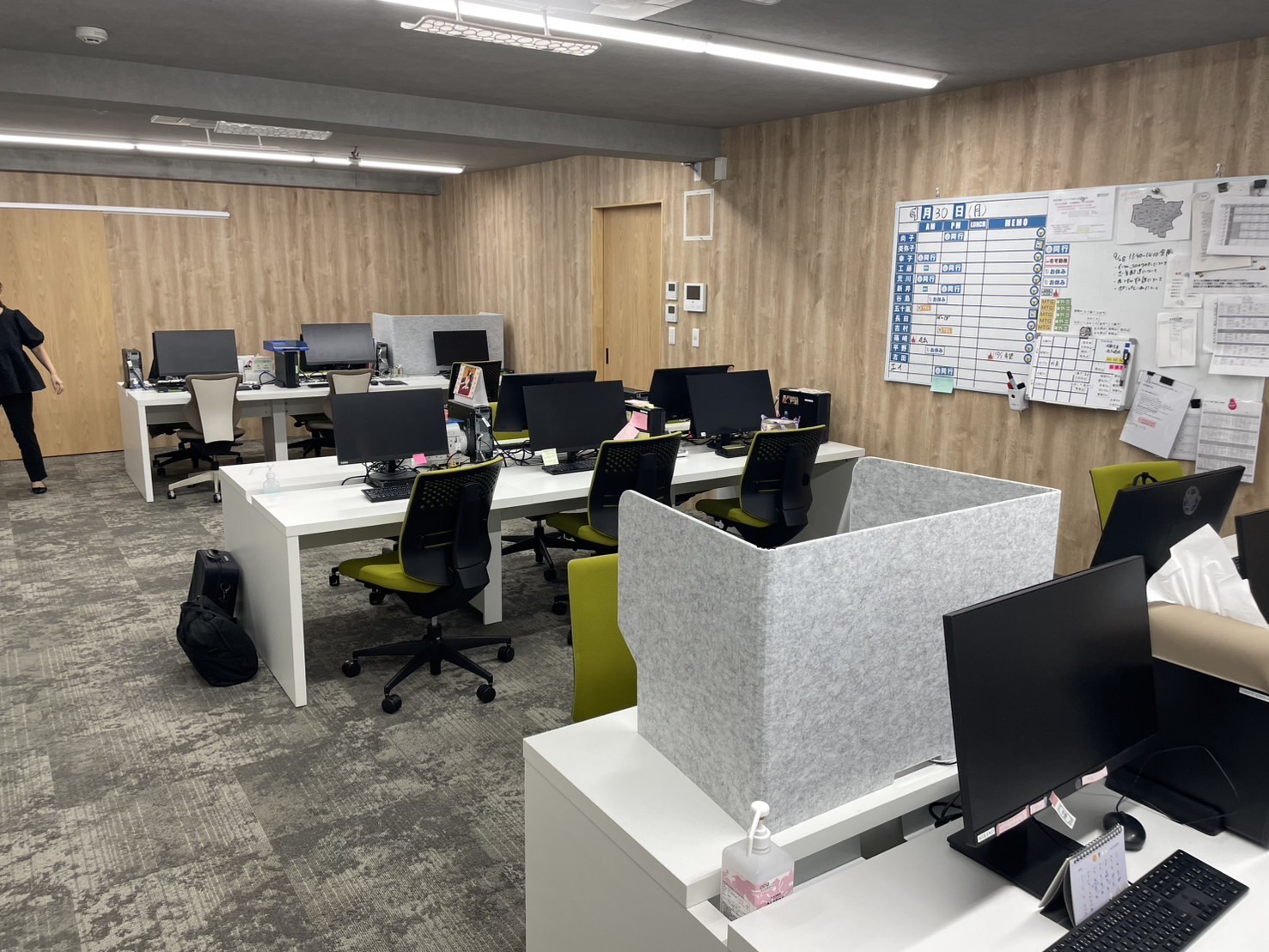電話相談の対応や各事業所様方への連絡など関係者の皆様とやり取りする事が多い為、オフィス内の声が入り乱れ無いような配慮でございます。