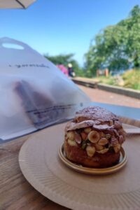 大自然の開放感あるテラス席でパンとスイーツをいただきました