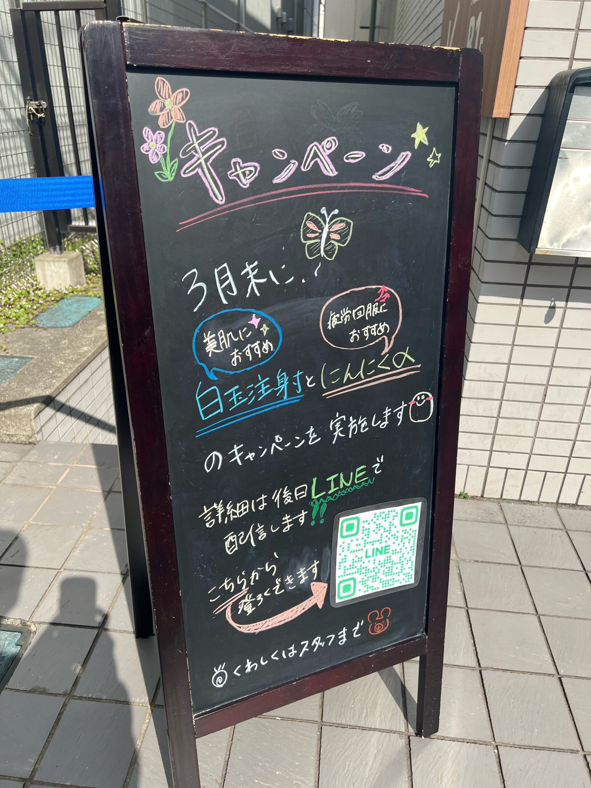 今月末の30.31日で、にんにくα注射と、白玉注射のキャンペーンを行うことになりました🎉
