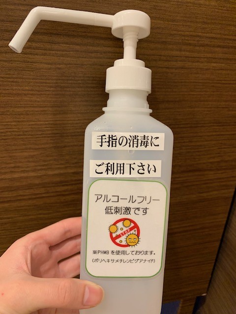 当院ではアルコールフリーの無臭・無刺激で且つ次亜塩素酸よりも殺菌能力がある