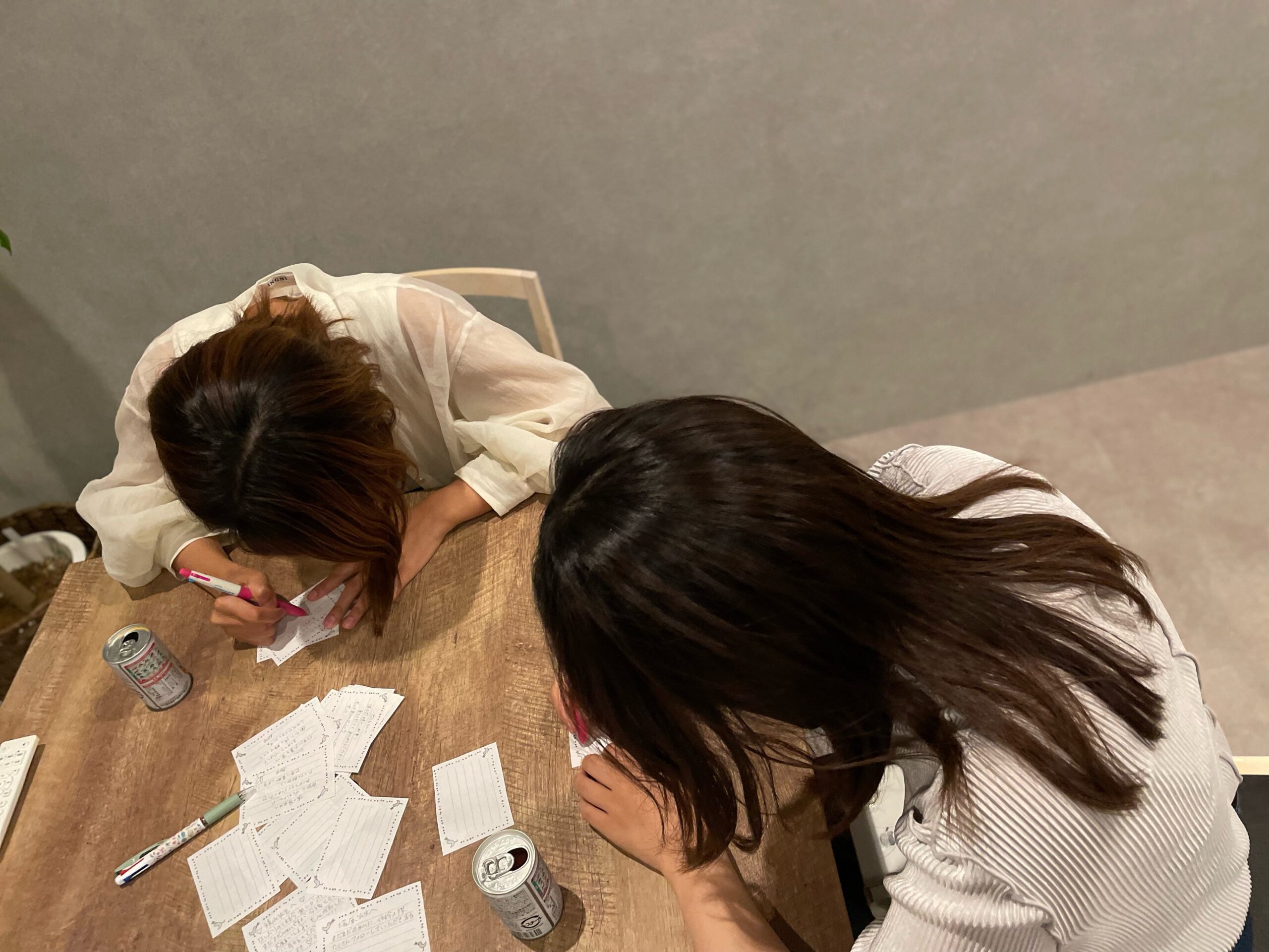 勤務終わりに、当院のスタッフがサンキューカードを書いている様子です。
