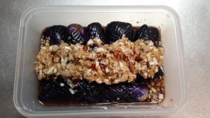 ④保存容器に①に茄子を並べ、③の調味液をかける。(冷蔵保管で3日間)