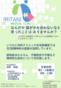 以前にも他のスタッフのブログでご案内しましたが、10月から在宅診療部に精神科の先生が増えました!