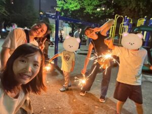 子どもたちは公園に夢中で大人だけで花火楽しむ時間もありました。笑