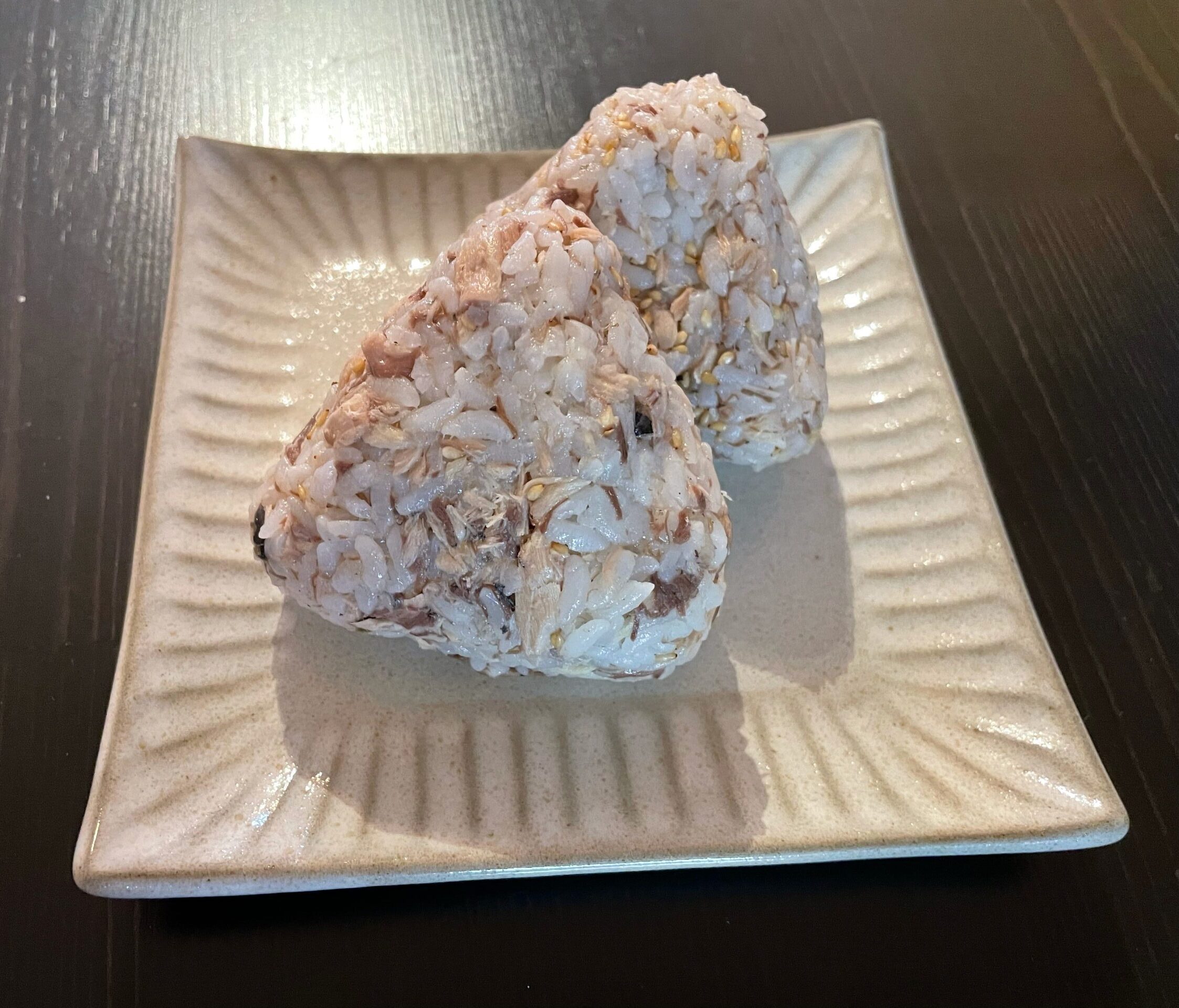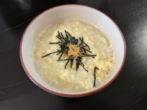 ①ご飯に水と顆粒だしを入れ、ご飯をほぐすように混ぜる
