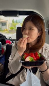 とりあえず、道の駅で買ったイチゴをおいしそうに食べているところだけ載せておきますね♡
