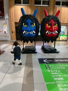 秋田駅ではなまはげや秋田犬がお出迎えしてくれましたよ🐶