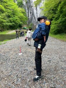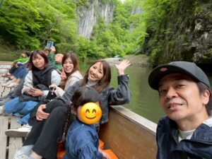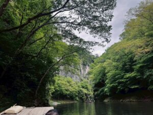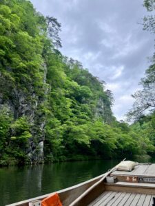 猊鼻渓舟下りです。緑と深い岩壁に囲まれた静かーな世界を渓谷遊覧。途中船頭さんが歌う歌声が渓谷に静かに響き渡り、とても味わい深かったです。