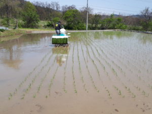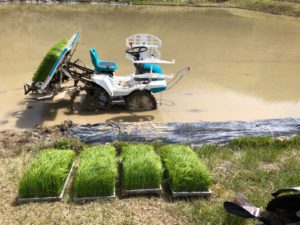 主人も今年は初めて田植え機に挑戦!! 私のお父さんからマンツーマンで指導されてます(笑)