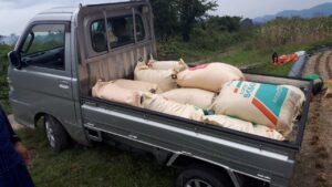 袋いっぱいになったお米を軽トラにのせ、涼しい倉庫に移動します。