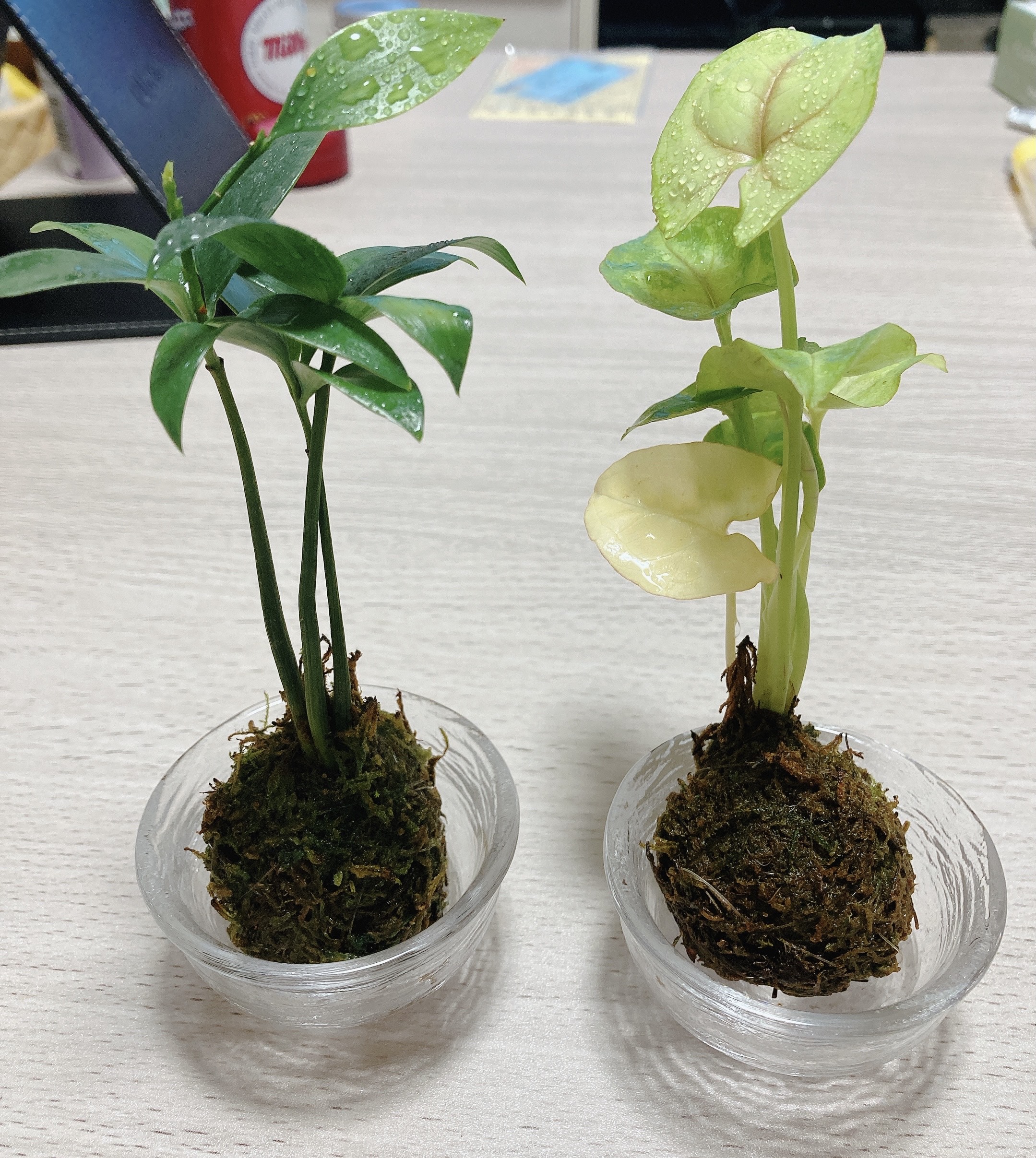 店員さんに2つで300円なんでもう1つ選んでくださいと言われ咄嗟に選んだのが右の苔玉さん。